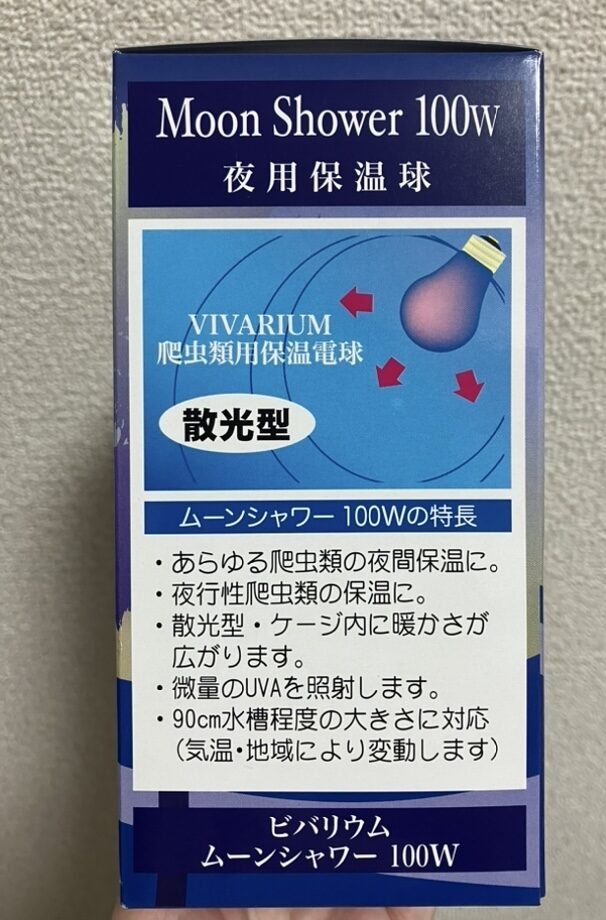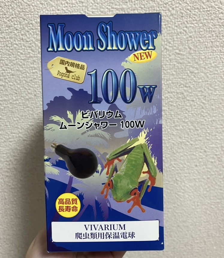 どうせなら夜も少し明るい方が温湿度計が見やすいし、ちゃわん🐢に干渉しない程度の明るさならいいかもしれないと思い『ポゴナクラブ 夜用保温球 ムーンシャワー』を買ってみました💡