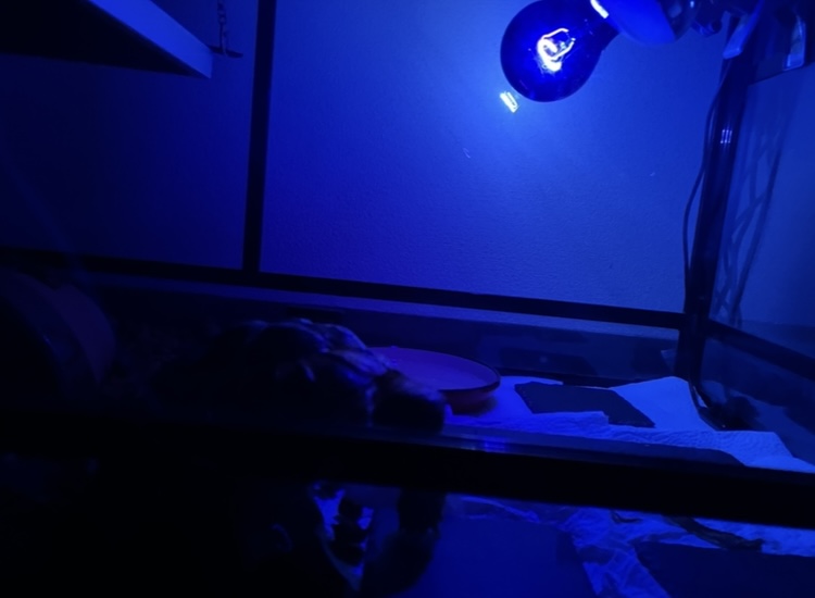 部屋は真っ暗にしていましたが、それでもケージ内の様子が写真に収められるくらいには明るいです。