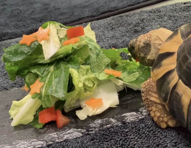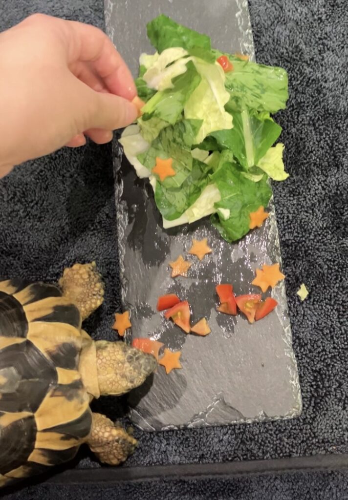 マズリ(リクガメフード)をベースに、にんじん🥕、トマト🍅でオーナメント風に。